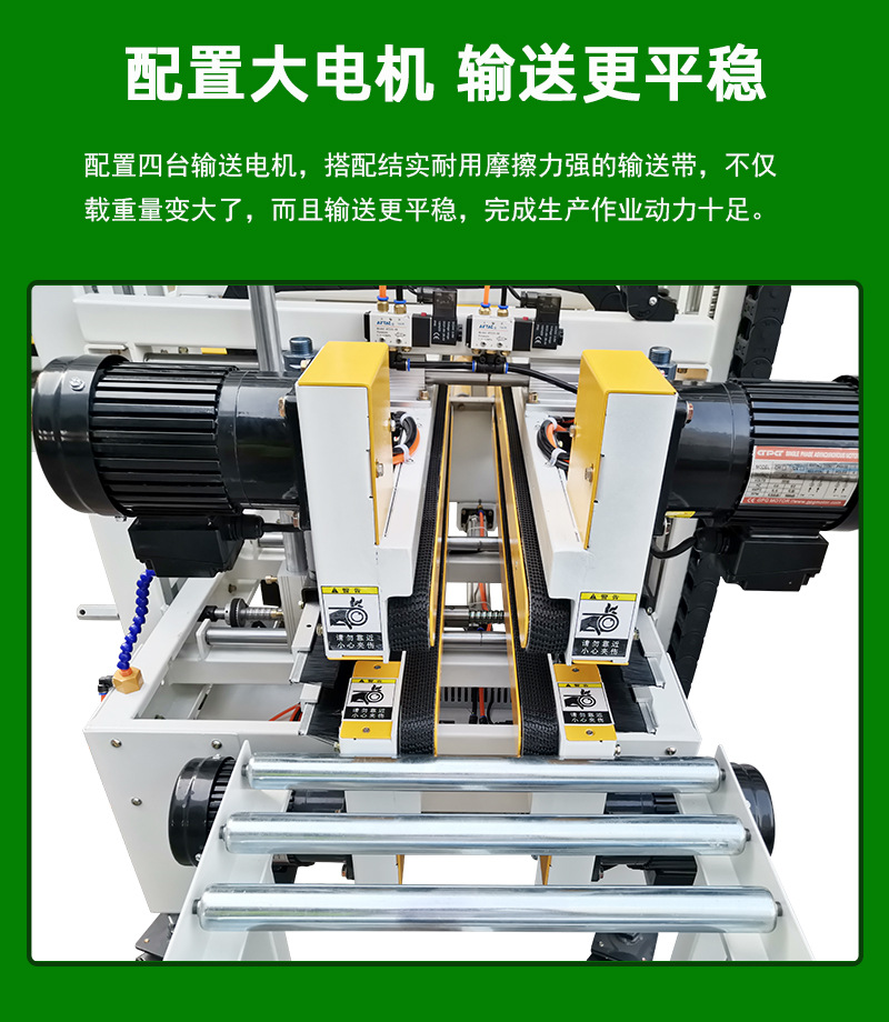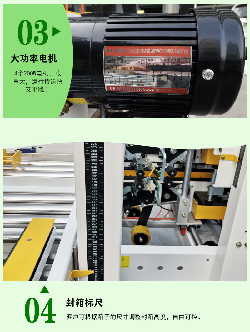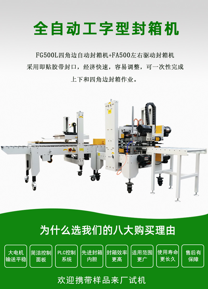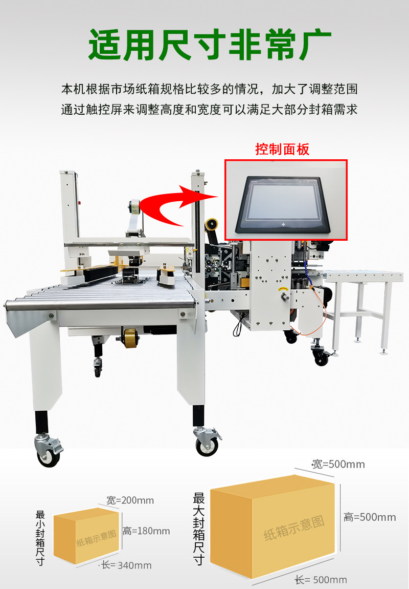 - 一般來(lái)說(shuō),工字封箱機(jī)的操作比較簡(jiǎn)單。操作人員只需要將紙箱放置在輸送帶上,啟動(dòng)機(jī)器,就可以自動(dòng)完成封箱過(guò)程。一些先進(jìn)的工字封箱機(jī)還配備了簡(jiǎn)單易懂的控制面板,通過(guò)控制面板可以調(diào)節(jié)輸送帶速度、壓輪壓力等參數(shù),方便操作人員根據(jù)實(shí)際情況進(jìn)行操作。