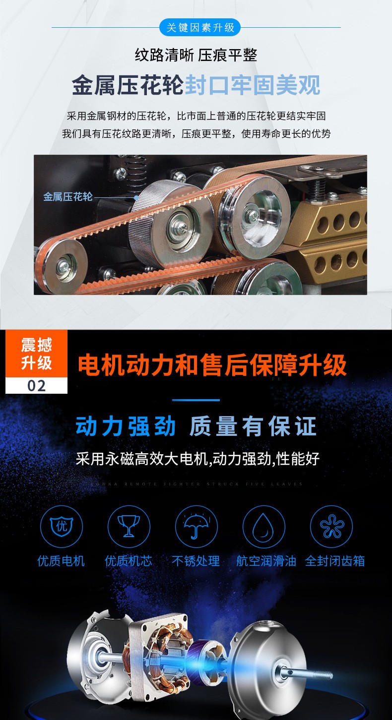 - 適用范圍廣:可以適應多種材質、厚度和尺寸的包裝袋,如塑料薄膜袋、鋁箔袋、復合袋等,還能根據不同的包裝需求,通過更換模具、調整參數等方式,實現對不同產品的封口包裝,滿足各行業的多樣化包裝要求145.