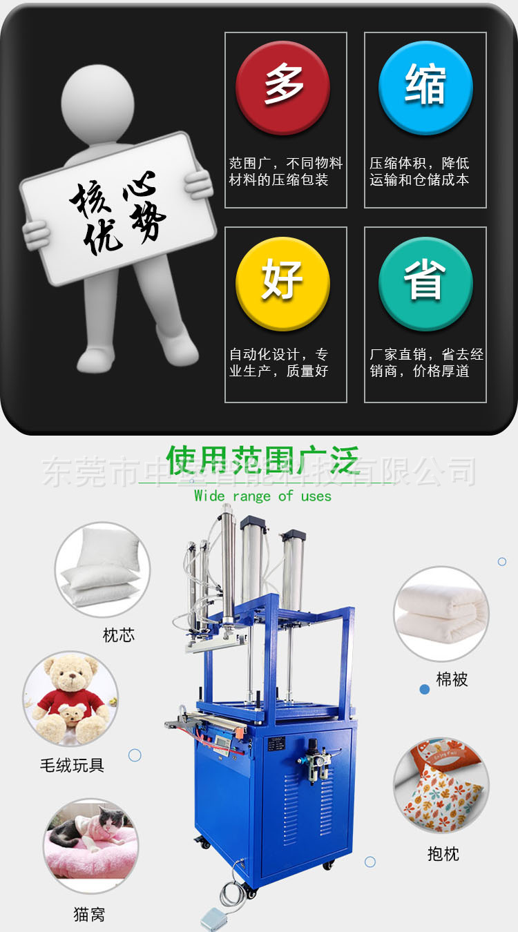 真空壓縮包裝機依靠氣缸、液壓缸這類動力部件,向包裝袋施加均勻壓力,壓縮物品體積