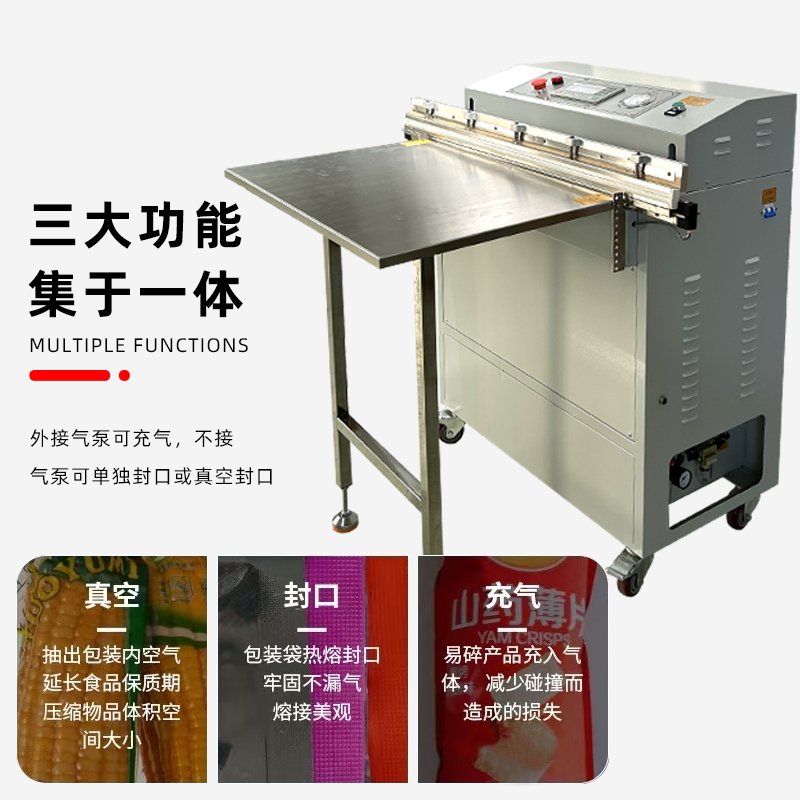 • 外抽式:一般采用立式結構,無密封真空室,由工作臺、抽氣裝置、封口裝置和控制系統等組成,結構較為簡單,占地面積小。