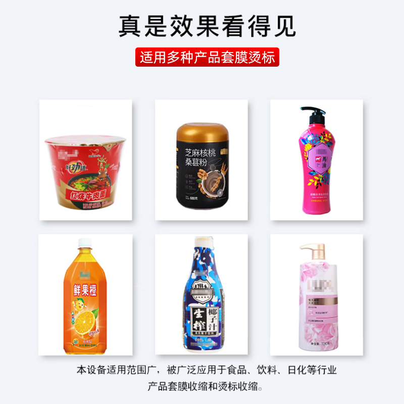 - 薄膜兼容:可處理 PVC、PET、PP 等多種常用收縮膜,尤其適合對收縮精度要求高的標簽收縮(如瓶身全包裹標簽)。
